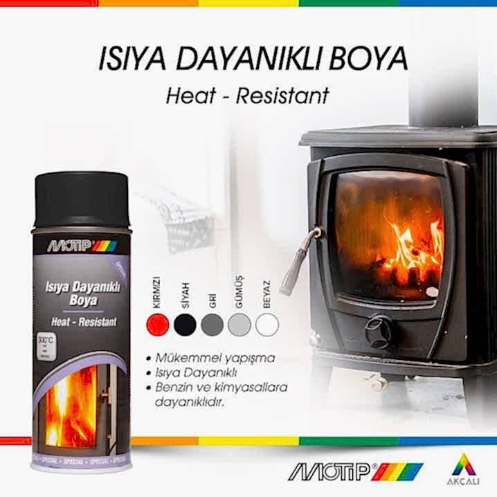 · Motip ısıya dayanıklı boya, ısıya maruz kalan mangal,soba borusu,egzost vs. gibi objelerin tadilat ve rütuşunda kullanılır.